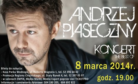 Już po raz drugi organizujemy konkurs wraz z Centrum Park Chojnice, nagrodą będzie podwójne zaproszenie na koncert Andrzeja „Piaska” Piasecznego 8 marca.