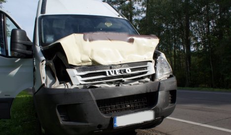 Kierujący dostawczym iveco nie zachował bezpiecznej odległości przed poprzedzającym go samochodem ciężarowym man, w konsekwencji uderzył w naczepę hamującego nagle TIR-a.