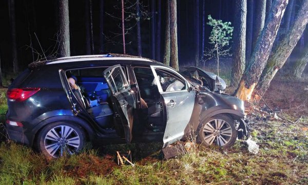 Policjanci chojnickiej komendy ustalają przyczyny zdarzenia drogowego, do którego doszło dziś rano w Drzewiczu. Wprost pod koła nadjeżdżającego samochodu wbiegło zwierzę leśne. Kierowca w celu uniknięcia zderzenia zjechał do rowu i uderzył w drzewo.