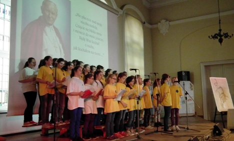29 kwietnia, trwając w dziękczynieniu i wielkiej radości z okazji niedzielnej kanonizacji Ojca Świętego Jana Pawła II w auli Szkoły Podstawowej nr 1 w Chojnicach odbył się program słowno - muzyczny.