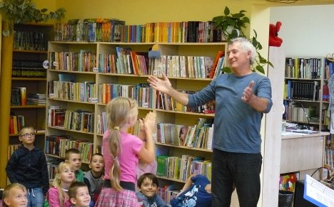 Tomasz Szwed - muzyczny felietonista, inicjator festiwalu Country i folk w Swornegaciach wczoraj (27.09.) w dziecięcym dziale miejskiej biblioteki pokazał swe mniej znane oblicze, jakkolwiek bardzo pasujące do jego osobowości i stylu życia.