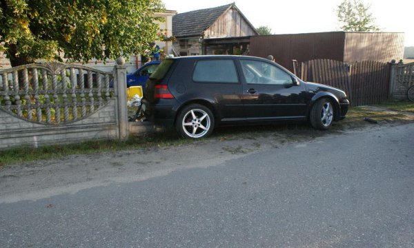 Kierujący samochodem osobowym marki volkswagen golf uderzył w ogrodzenie w miejscowości Dąbki w gminie Czersk. Do zdarzenia doszło dziś (11.09) ok. godz. 7.00. Mieszkaniec gminy Czersk, jak się później okazało, nie posiadał uprawnień do kierowania pojazda