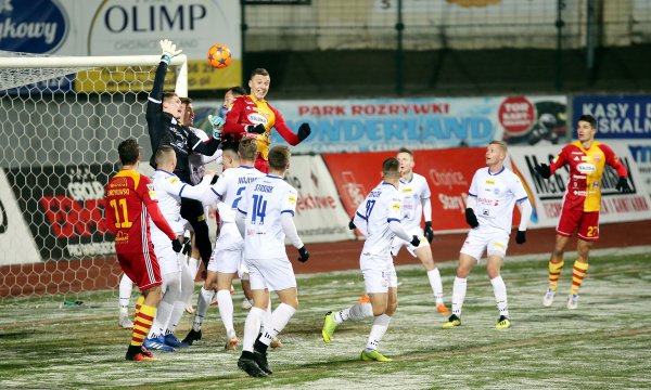 Mimo złych warunków atmosferycznych i zmrożonego boiska dzisiejsze spotkanie Chojniczanki z Wigrami Suwałki było emocjonujące. Zmarznięci kibice nie mogli narzekać na brak sytuacji i strzałów.