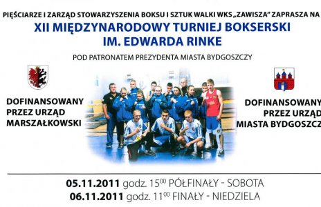 W niedzielę w Bydgoszczy zakończył się XII Międzynarodowy Turniej Bokserski im. Edwarda Rinke, który przez 2 dni rozgrywany był w małej hali Zawiszy. W zawodach udział wzięło 83 zawodników z 4 państw, Litwy, Czech, Białorusi oraz Polski.