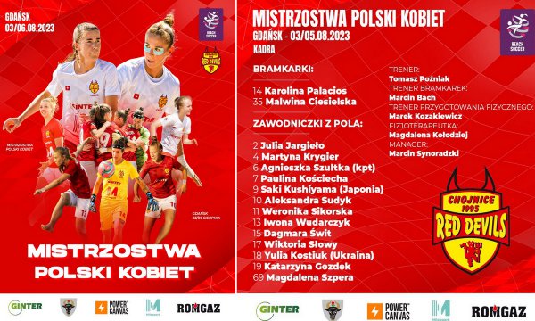 W dniach od 3 do 6 sierpnia w Gdańsku na stadionie Letnim odbędą się Mistrzostwa Polski w beach soccera kobiet i mężczyzn. W rozgrywkach kobiecych udział weźmie 8 drużyn podzielonych na dwie grupy.