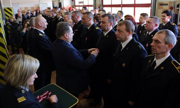 Wiceminister Spraw Wewnętrznych i Administracji Jarosław Zieliński wręczył dziś samorządowcom z regionu promesy na odbudowę dróg i infrastruktury po nawałnicy, strażakom z Rytla kluczyki do wozu strażackiego oraz przypiął medale.