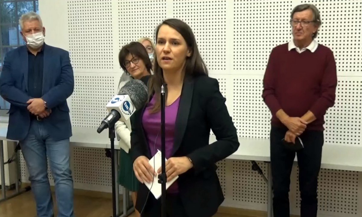 Dziś Agnieszka Pomaska, posłanka Platformy Obywatelskiej kandydatka na przewodniczącą PO na Pomorzu gościła w Chojnicach. | fot. screen video