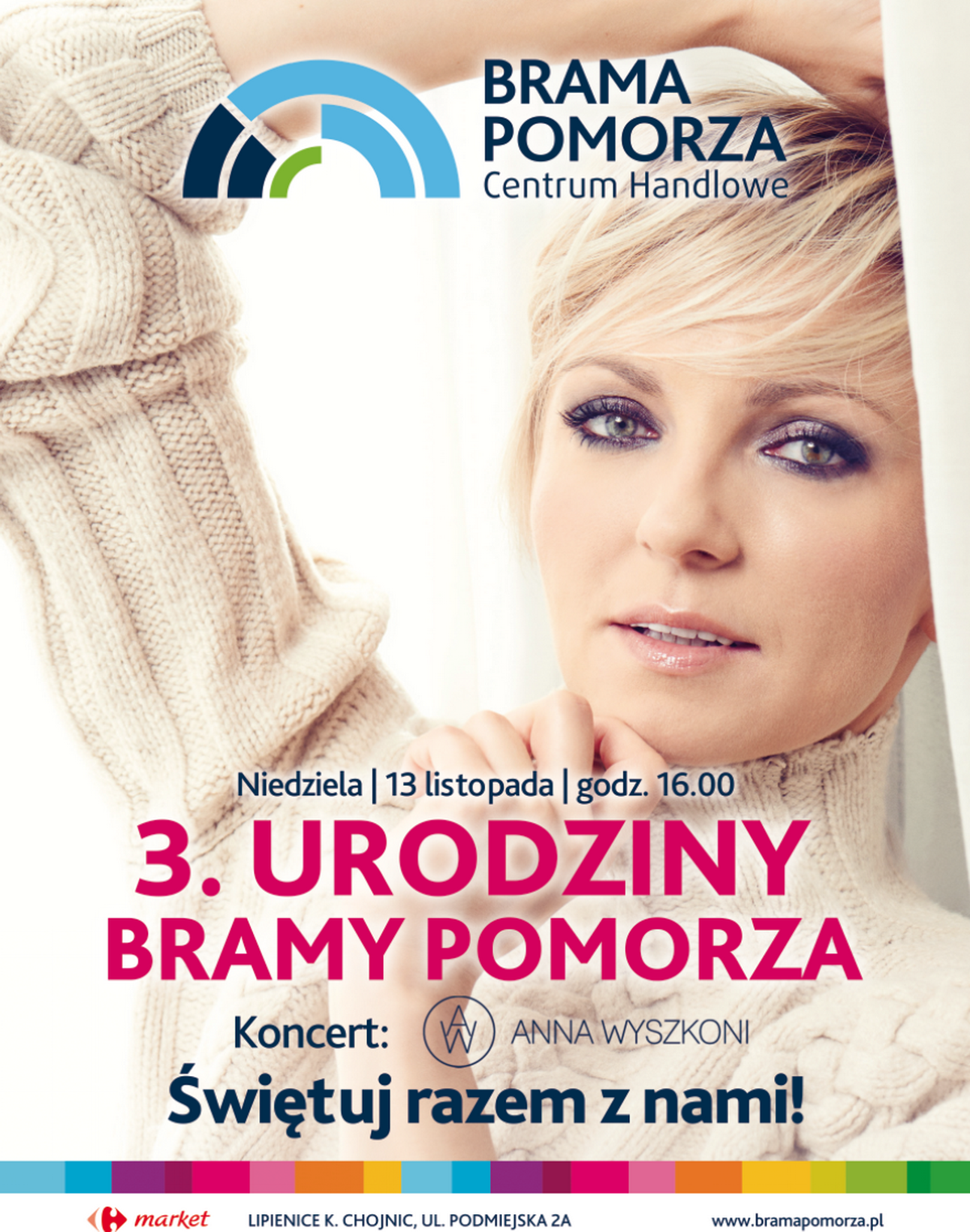 Już 13 listopada o godzinie 16:00 zapraszamy wszystkich Państwa do wspólnych obchodów trzecich urodzin Centrum Handlowego Brama Pomorza w Lipienicach.