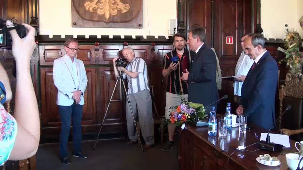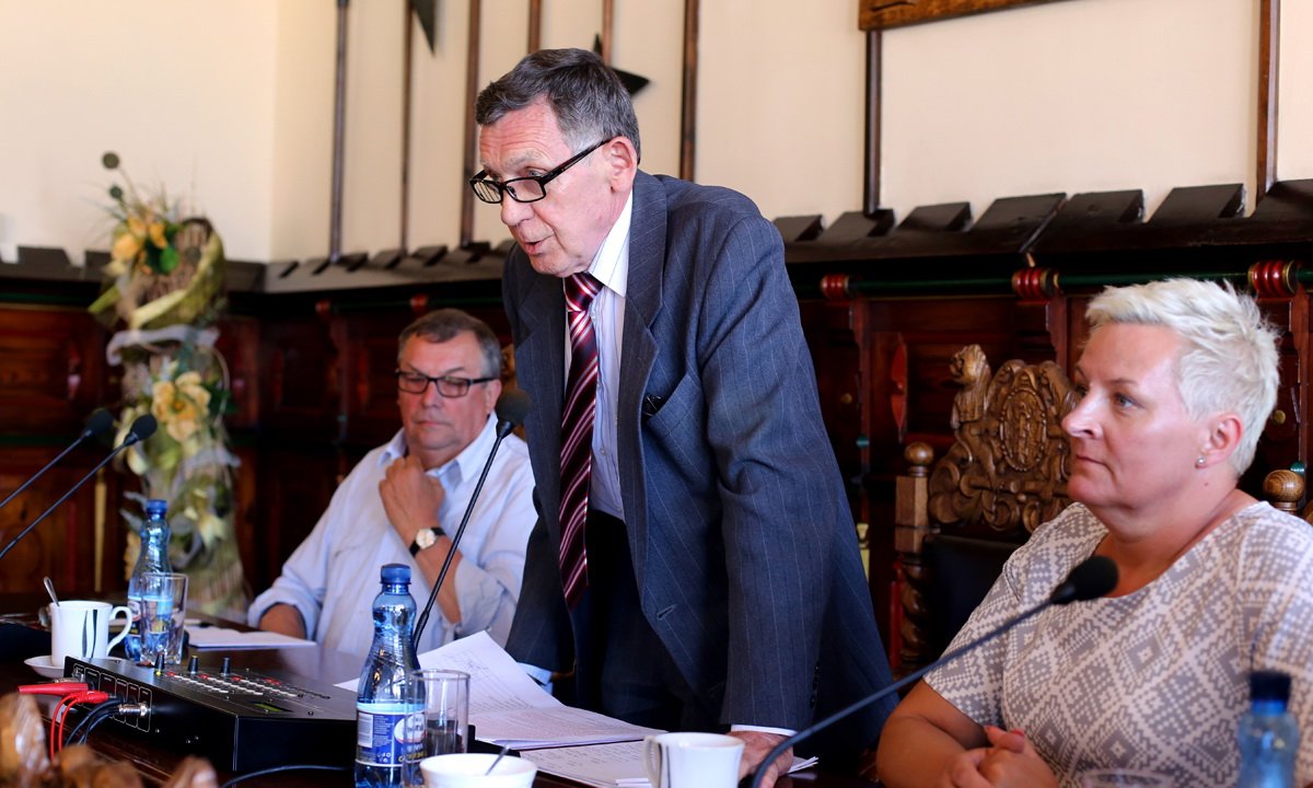 29 maja 2017 12:38Dziś na początku sesji rady miasta radni pożegnali wieloletniego przewodniczącego rady Mirosława Janowskiego. Mirosław Janowski nie poprowadził bowiem sesji rady miejskiej, bo taka jest decyzja sąd – radny prowadził działalność na mieniu gminy. Zastąpił go tymczasowo Józef Skiba. Janowski przyszedł jednak dziś na sesję, gdyż za długą współpracę chcieli mu podziękować burmistrz Arseniusz Finter, skarbniczka Krystyna Perszewska oraz inni radni.