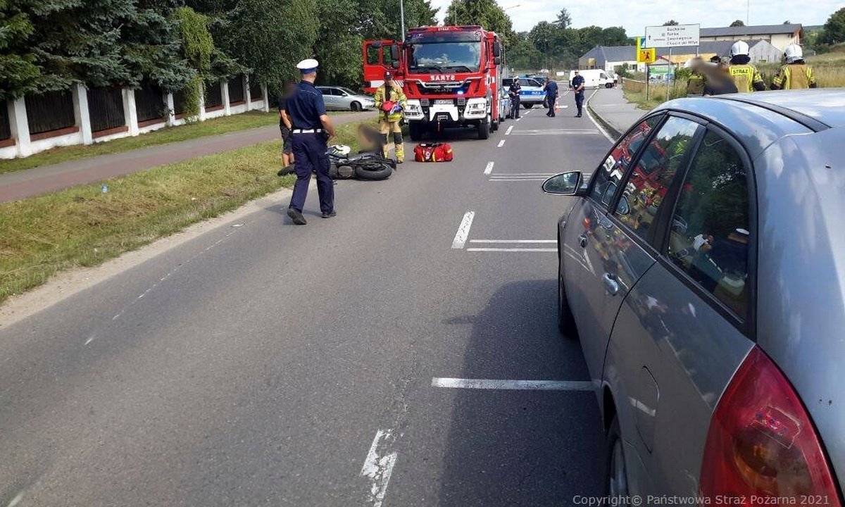 Na szczęście motocyklista nie odniósł obrażeń, a kierujący pojazdami byli trzeźwi. | fot. KPPSP Chojnice