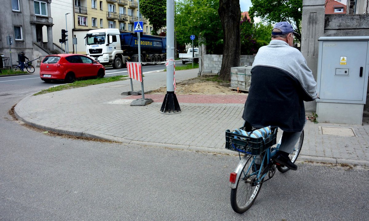 Drugim niebezpiecznym miejscem, na które zwraca uwagę radny Bluma jest łuk przy skrzyżowaniu ulic Dworcowej i Alei Brzozowej. - Na łuku drogi jest wyjazd z nieruchomości, gdzie jest mocno ograniczona widoczność. A druga sprawa, przy przejściu dla pieszych znaki są ustawione w tak niefortunny sposób, że odległość między nimi, prześwit, przez który poruszają się rowerzyści i piesi, to jest zaledwie 130 cm. Tam nie ma możliwości, żeby piesi się swobodnie minęli, a co dopiero rowerzyści, którzy średnio jadą z prędkością do 20 km/h.