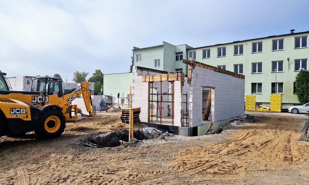 Przy Zespole Szkół Ponadgimnazjalnych nr 2 w Chojnicach przy ul. Angowickiej powstaje sala gimnastyczna wraz z infrastrukturą towarzyszącą. Powiat złożył wnioski o dofinansowanie budowy dwóch kolejnych sal. | fot. Rmak