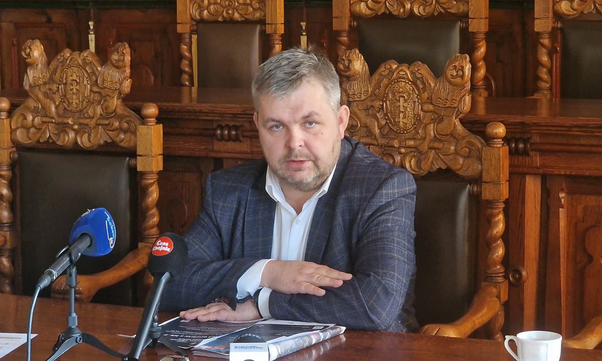 Aleksander Ciepliński zastępca Naczelnika Urzędu Skarbowego w Chojnicach podczas konferencji prasowej w ratuszu poinformował o spotkaniach informacyjnych dotyczących Krajowego Systemu e-Faktur (KSeF).