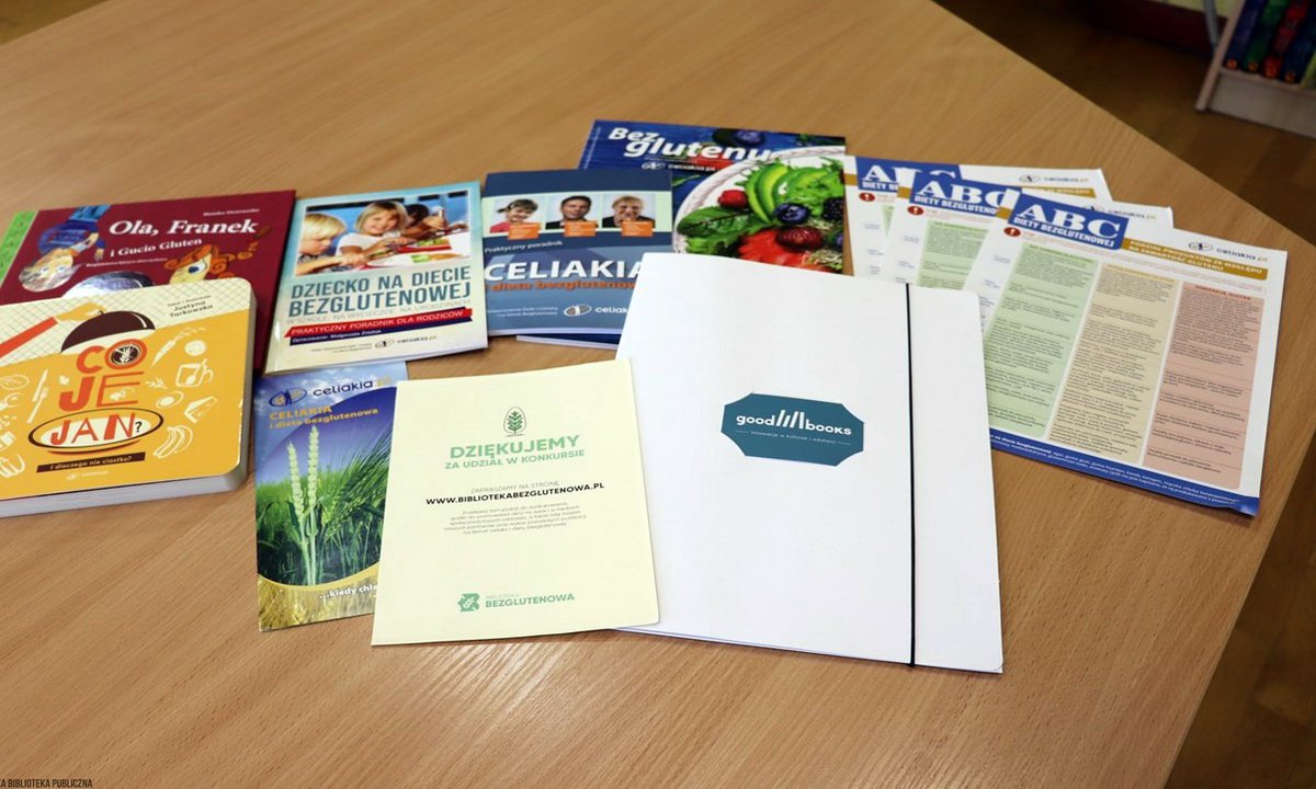 Do Wypożyczalni i Czytelni dla Dzieci właśnie dotarły nagrody książkowe, które wkrótce zasilą tworzącą się półkę z książkami na temat celiakii i diety bezglutenowej. Jak czytamy na stronie internetowej organizatora: „Celem projektu jest rozpowszechnianie wiedzy na temat celiakii i diety bezglutenowej poprzez bezpłatne udostępnianie bibliotekom wydawnictw o tej tematyce. Chcielibyśmy, by w każdej bibliotece w Polsce na półce z książkami o dietach i zdrowym odżywianiu znalazły się także publikacje dla osób na diecie bezglutenowej prezentowane na stronie bibliotekabezglutenowa.pl.”