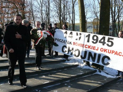 Oglądając film z okazji składania kwiatów przy pomniku - do władze miasta zrobiły ładny gest dla poległych żołnierzy Armii Czerwonej - za to ci wszyscy co chociać trochę wiedzą co to wojna i polec za obcy kraj, tylko dlatego aby był wolny od okupanta niemieckiego, który dokonał wielkich cierpien nam Polakom jak i Narodom Związku Radzieckiego. Polegli pod Chojnicami i im chwała. Teraz taki młokos, który jeszcze nie wąchał prochu, a może trawkę zacznie dyskutować z p. burmistrzem - że kole go napis bohater. Sam ubrał się w czapkę podobną jaką nosili ci bohaterzy - uszankę. Ot bohater. Nie zna historii a jak zna to taką jaką zniekształca p. Wałdoch. Z takim transparentem powinien iść na wysypisko i pomaszerować. A nie tam, gdzie powinna być powaga bo tam leżą ci co polegli,aby mógł by żyć w Polsce, a nie w obawie, czy nie przeleci przez komin Stuthofu czy Oświecimia. Bo to nasz i Pomorzaków czekało. Pomyślcie młodzi opętani wrogością do tych żołnierzy - bohaterów - ale nam ten nasz przywódca w głowach przestawił. Chwała bohaterom ZSRR z 1945 niech im chojnicka ziemia lekką będzie, tak jak byśmy chcieli aby była dla naszych bohaterów z pod Monte Casino,lotnikom polskim poległych w obronie Londynu i dużo innych cmentarzach w Europie. Młodzi do nauki historii, takiej jaka jest a nie takiej jaką niejedni chcą, aby była. Czarne jest białe a białe jest czarne.Tak już jeden twierdził.