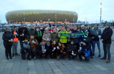 W niedzielne popołudnie po otrzymaniu darmowych wejściówek uczniowie Gimnazjum w Sławęcinie wraz z nauczycielami i opiekunami wybrali się do Gdańska na mecz Ekstraklasy, który odbył się na stadionie Energa.