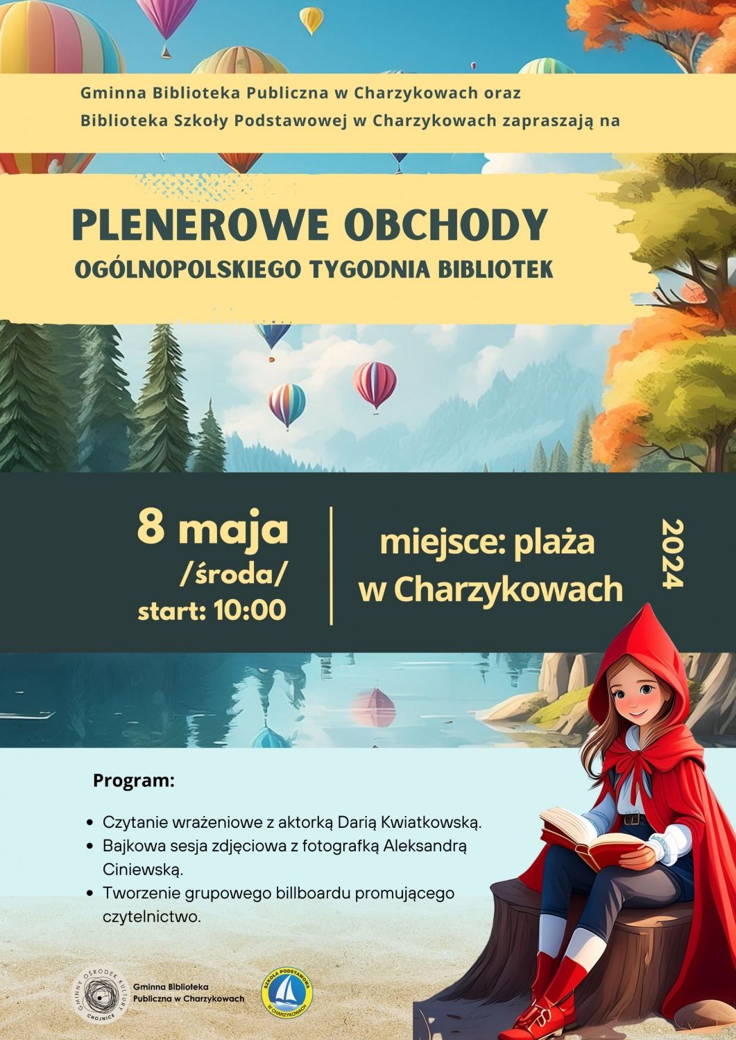 Gminna Biblioteka Publiczna w Charzykowach wraz ze szkolną biblioteką włącza się obchody Tygodnia Bibliotek. Atrakcje rozpoczną się w środę 8 maja od godziny 10 na charzykowskiej plaży.