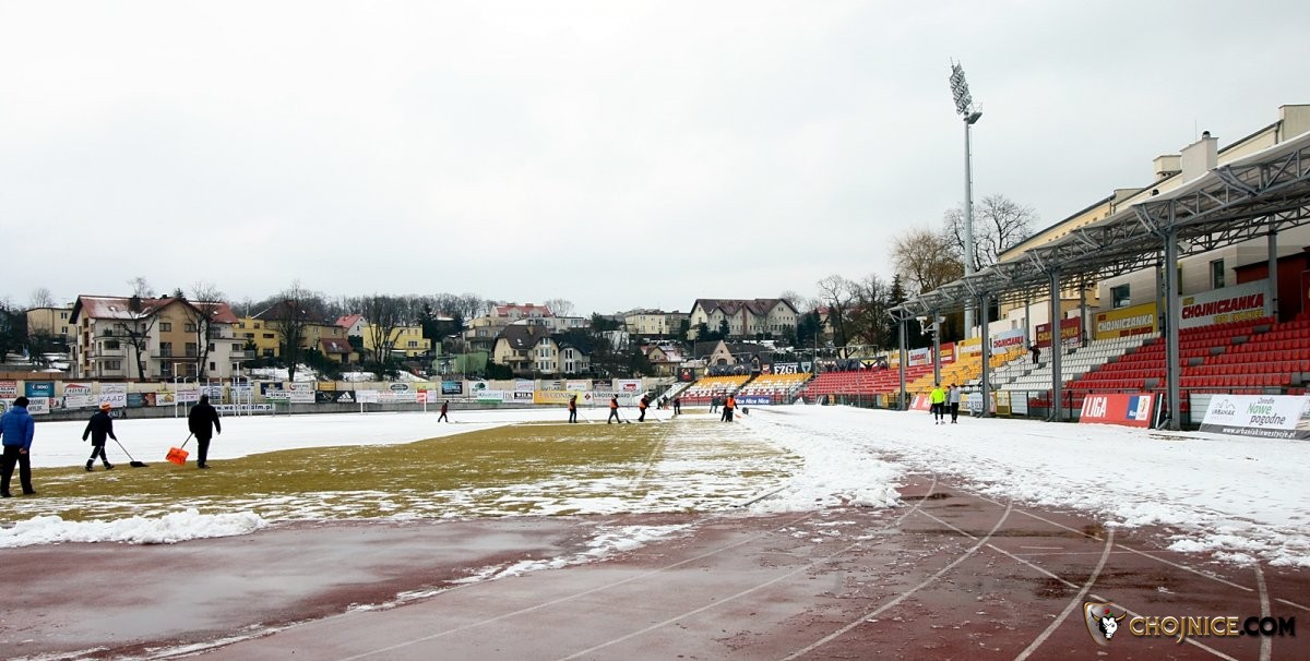 W klubie uspakajają, że jutrzejszy mecz – mimo nadal zimowej aury - z Odrą Opole nie jest zagrożony i odbędzie się zgodnie z planem. A zapowiada się on bardzo interesująco. Obie drużyny sąsiadują ze sobą w czubie ligowej tabeli. Odra ma tylko jeden punkt mniej od Chojniczanki, ale aż dwa mecze rozegrane więcej. Jeśli więc piłkarze z Opola chcą jeszcze myśleć o awansie, muszą w Chojnicach wygrać.