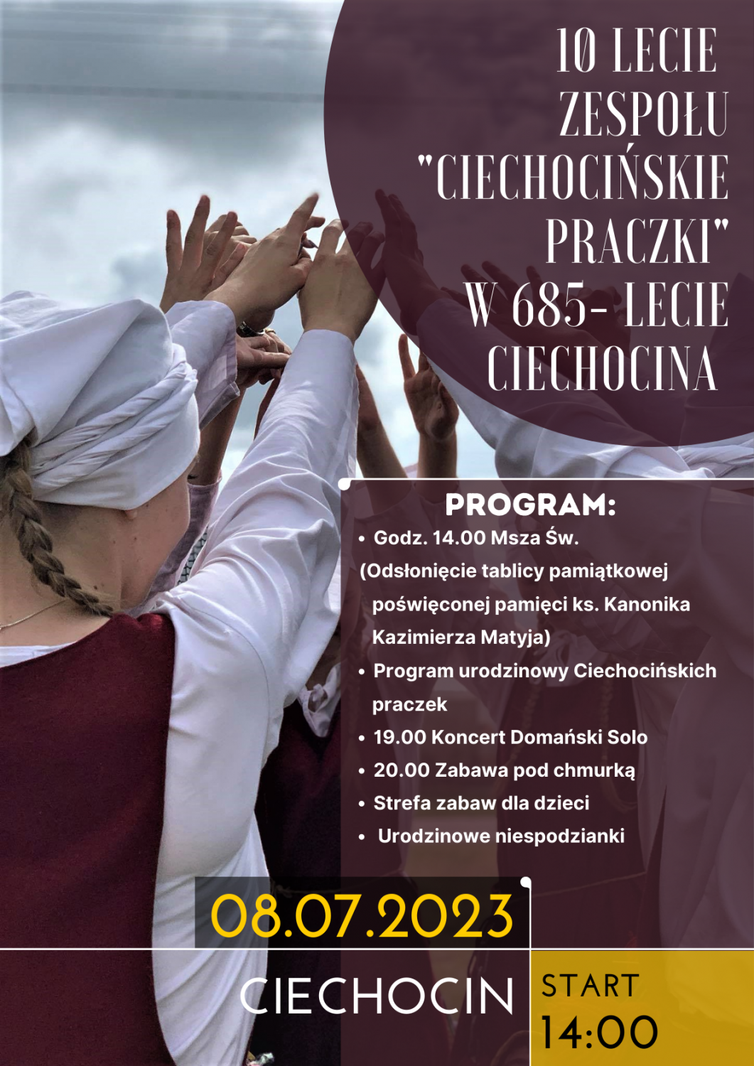 Zespół dziewczęcy „Ciechocińskie Praczki”, którego najczęściej widzieliśmy z okazji Turniejów Rycerskich, obchodzi X-lecie istnienia. Odbędą się razem z uroczystościami założenia przed 685 laty wsi Ciechocin w gminie Chojnice.