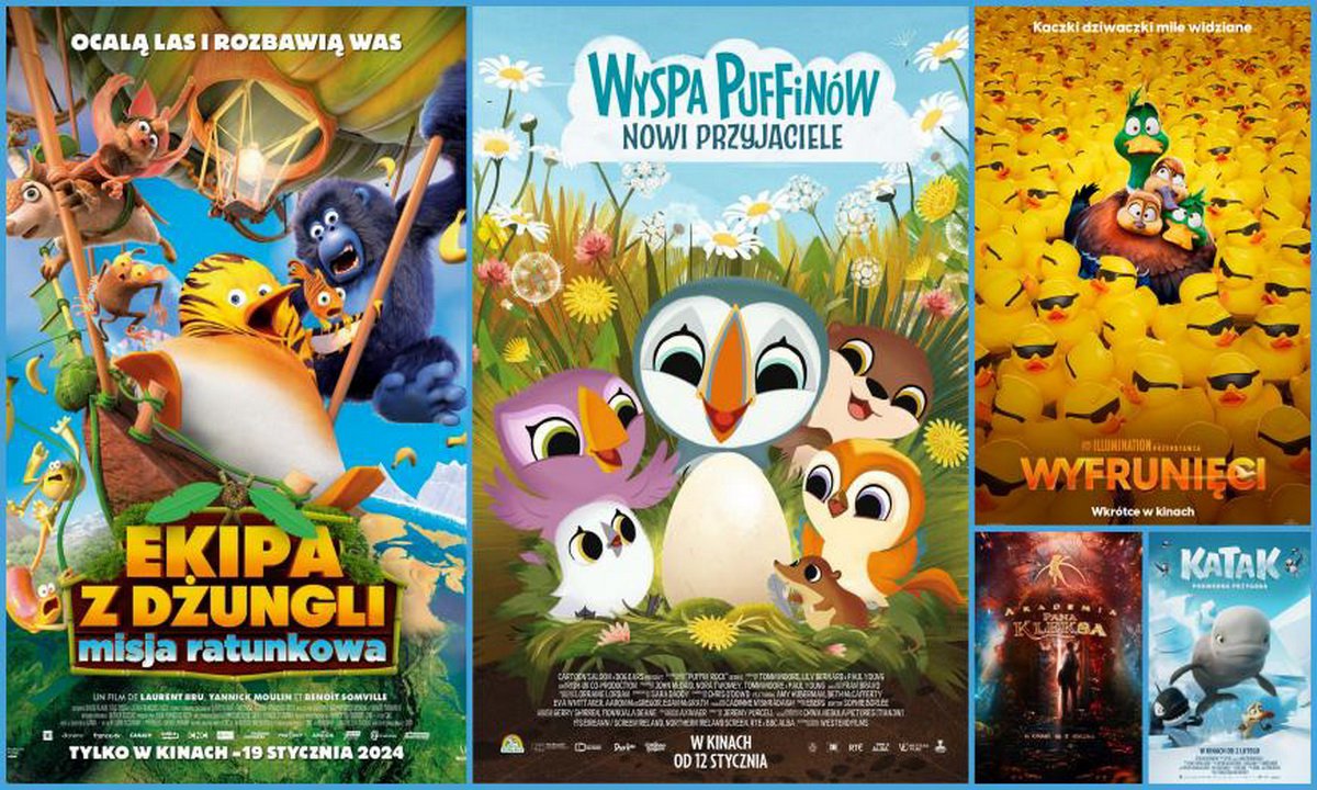22 stycznia 2024 09:00Dla naszych widzów przygotowaliśmy kilka ciekawych propozycji filmowych. W ofercie znajdą Państwo tytuły dla dzieci ("Katak. Podwodna przygoda", "Ekipa z dżungli. Misja ratunkowa", "Wyspa Puffinów: Nowi przyjaciele" oraz "Wyfrunięci"), młodzieży ("Akademia Pana Kleksa") oraz dorosłych ("Baby Boom czyli Kogel Mogel 5", "Miłość jak miód").
