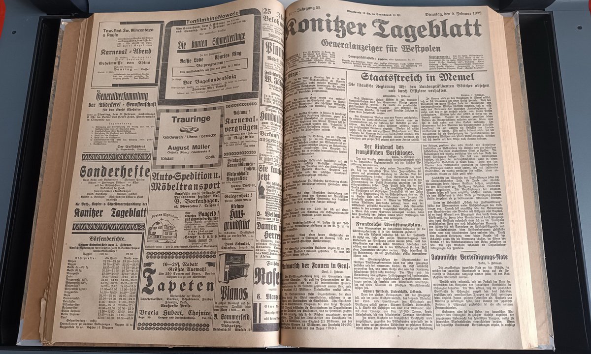 Przywieźliśmy także „Konitzer Tageblatt” – ważny dziennik regionalny, ukazujący się w Chojnicach (niem. Konitz) na przełomie XIX i XX wieku. To prawdziwa kopalnia wiedzy dla historyków, regionalistów i genealogów badających dzieje Pomorza Gdańskiego. Pracujemy nad tym, by te materiały były dostępne szerzej – dla wszystkich zainteresowanych historią regionu.