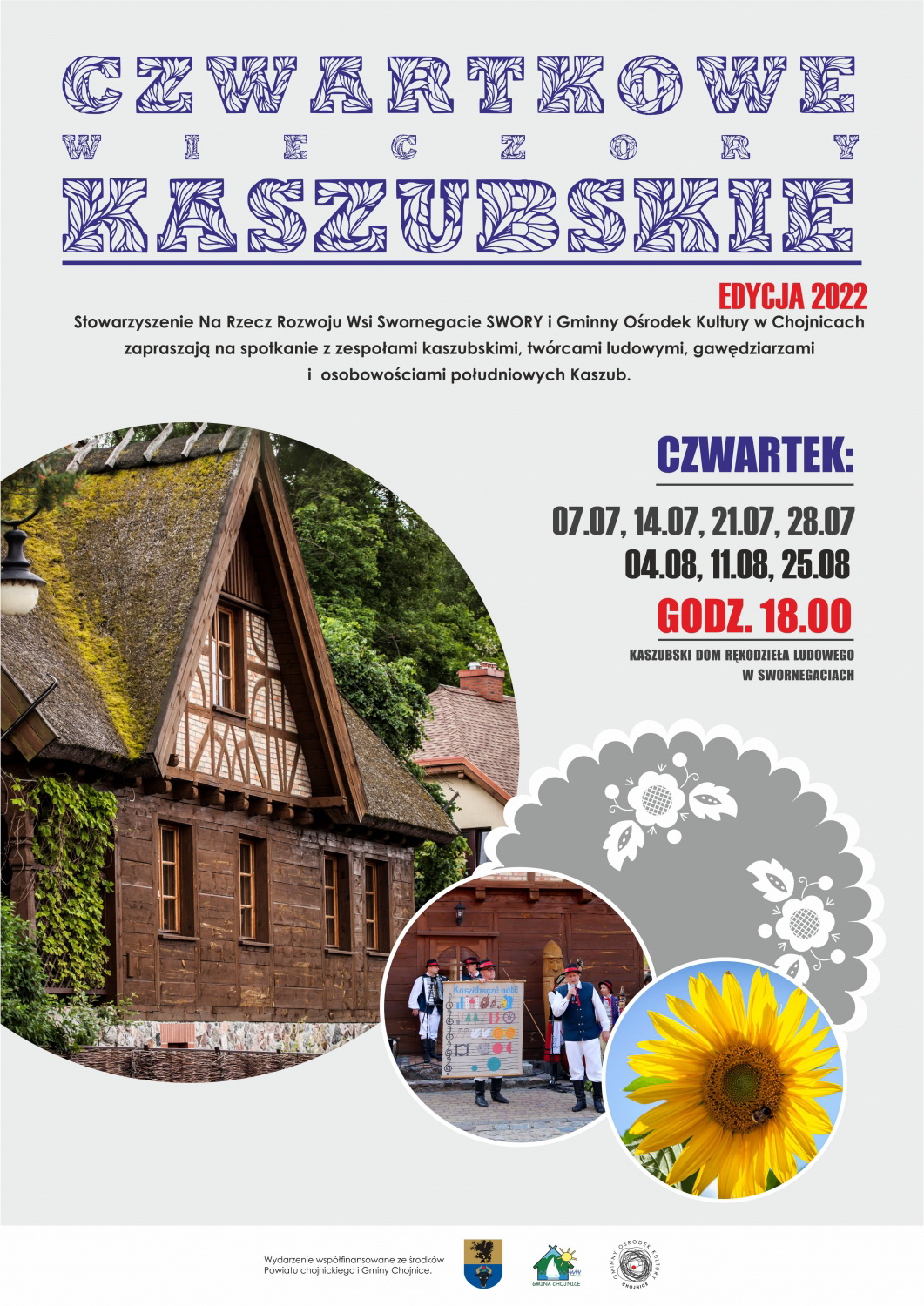 W Swornegaciach lato w pełni. Trwa sezon turystyczny, a co za tym idzie cykl imprez, zabaw i rozrywki. Pierwsze wakacyjne kroki już za nami, a cały czas nabieramy rozpędu. Zapraszamy dziś (7.07.) na spotkanie z cyklu „Czwartki Kaszubskie”.