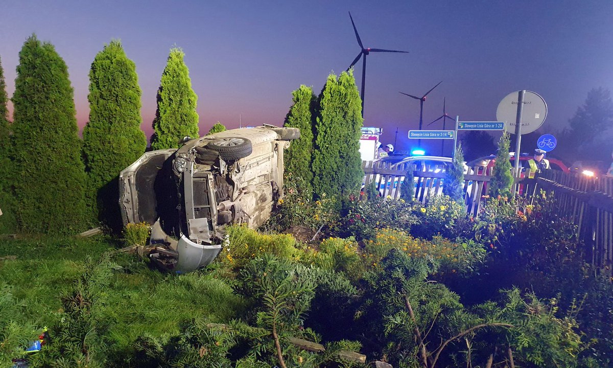 W niedzielny wieczór 10 września w Sławęcinie gmina Chojnice doszło do groźnie wyglądającego zdarzenia - samochód osobowy wypadł z drogi i dachował w przydomowym ogródku.