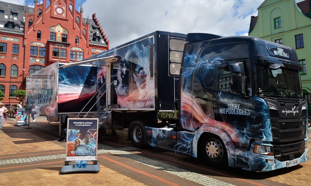 Przypominamy, że od dzisiaj do środy (31.07.) na Starym Rynku w Chojnicach można zobaczyć Iskry Niepodległej – nowoczesny spektakl multimedialny umieszczony w specjalnie zaprojektowanej naczepie ekspozycyjnej, która może podróżować po całej Polsce.