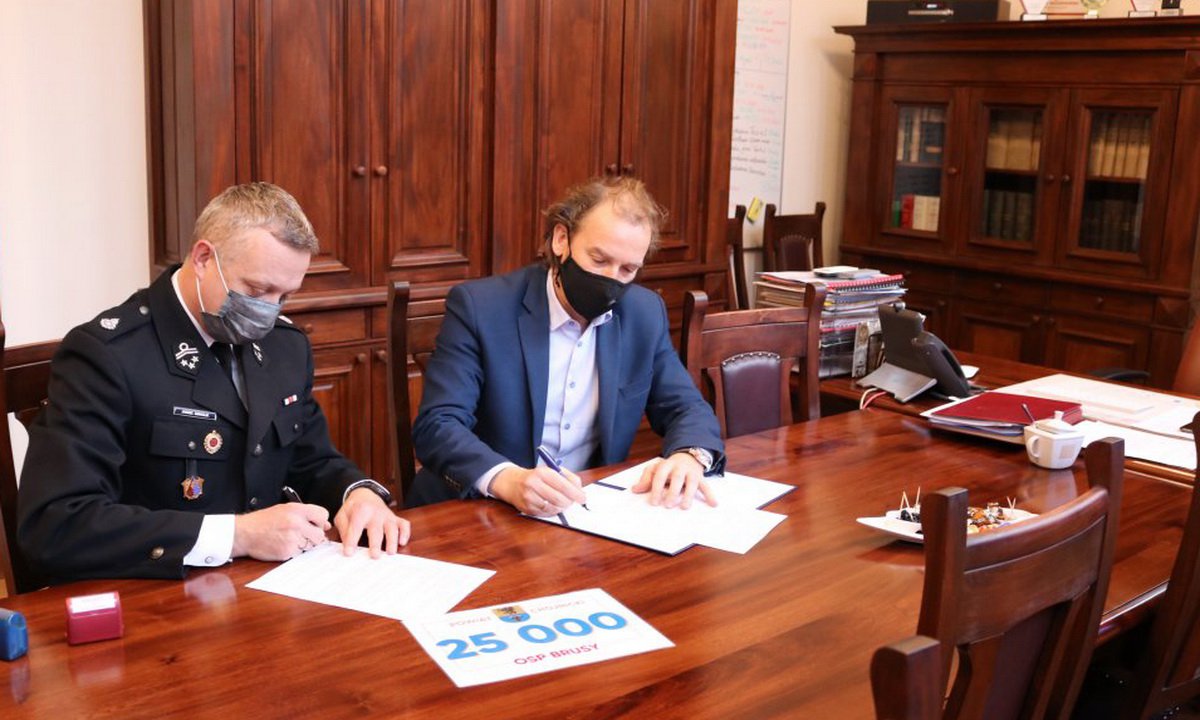 Kolejna jednostka OSP z powiatu chojnickiego otrzymała dofinansowanie na zakup samochodu. Powiat na pomoc w zakupie auta dla OSP Brusy przekazał 25 000 zł. Umowę podpisał ze starostą Markiem Szczepańskim podpisał Janusz Szmaglik, prezes OSP Brusy.