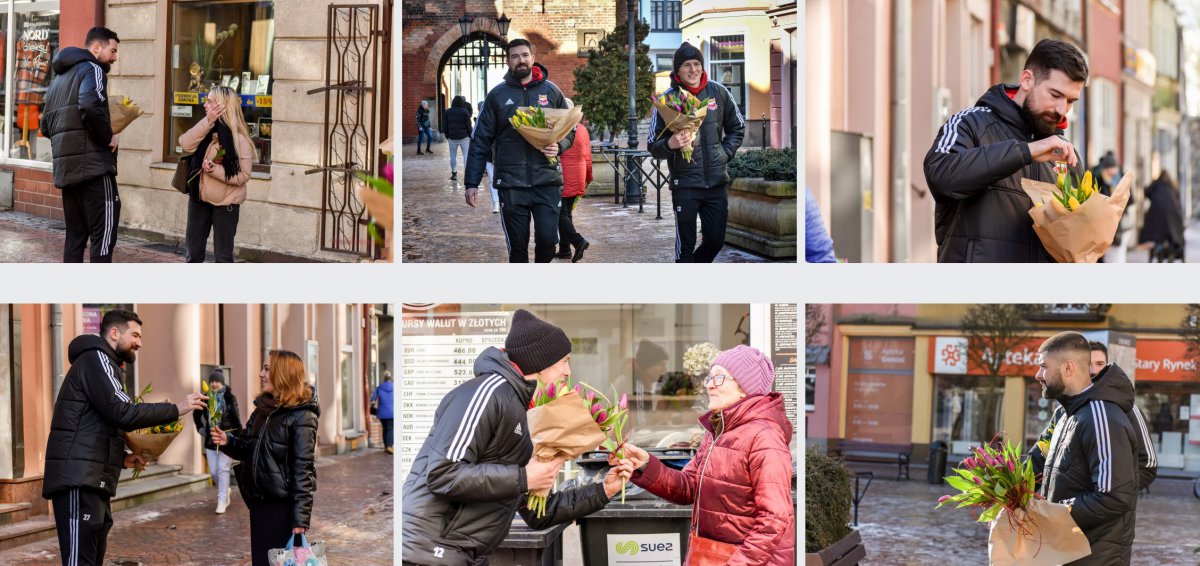 To jednak nie był koniec naszej akcji. Byli zawodnicy, ale na Starym Rynku w Chojnicach w godzinach popołudniowych z najserdeczniejszymi życzeniami na Dzień Kobiet pojawili się również nasi trenerzy w składzie: Piotr Kieruzel, Paweł Skiba i Łukasz Rusinek.