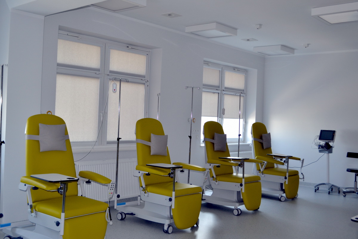 W szpitalu otworzono po modernizacji oddział chemioterapii dziennej. Pacjenci mają do dyspozycji 12 nowych stanowisk. | fot. Szpital Ch-ce