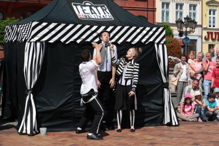 4 lipca 2016 01:08Festiwal Sztuki Ulicznej „Chojnicka Fiesta” to niezwykłe wydarzenie, które daje możliwość zetknięcia się z magią teatru, żywym aktorem, pięknymi i efektownymi formami teatralnej scenografii. Różnorodność przedstawień oraz zaplanowanych wydarzeń sprawiły, że każdy przechodzień stał się widzem, a każdy widz częścią wykreowanej rzeczywistości.
