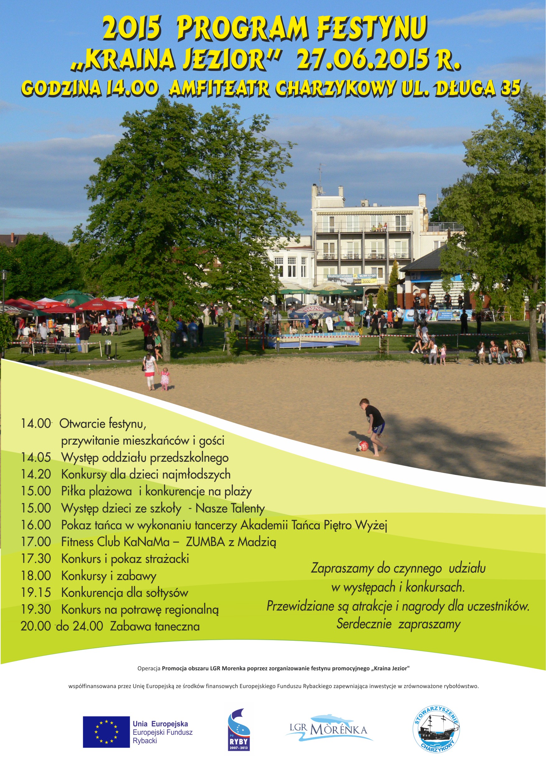 W najbliższą sobotę 27 czerwca organizatorzy zapraszają mieszkańców regionu i turystów na festyn „Kraina jezior”, który odbędzie się w godzinach od 14.00 do 24.00 w Charzykowach.
