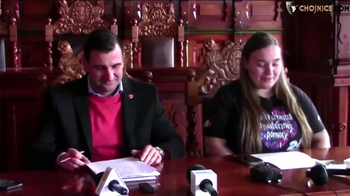 WOŚP zbliża się wielkimi krokami. W tym roku miasto ponownie będzie wspierać chojnickich „dyrygentów”. Na zdjęciu wiceburmistrz Adam Kopczyński, Paulina Ambroziak. | fot. (je)