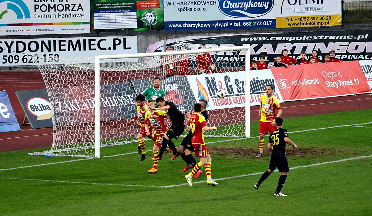 Chojniczance nie pomogły też wcześniejsze ofensywne zmiany – w drugiej połowie w 64. min pojawił się na boisku Emil Drozdowicz, w 70. min. Tomasz Mikołajczak, a w 75. min. Jakub Biskup. Na boisku mogło być dziś i sześciu napastników, ale jak nie ma pomysłu i dobrych podań, to nie ma dobrych sytuacji. Mikołajczak wszedł dobrze w to spotkanie, próbował zabierać się z piłką i szukać sytuacji, ale w końcówce spotkania wdał się w bezsensowne faule, przez które zespół tracił cenny czas. Goście w ostatniej minucie jakimś przypadkiem znaleźli się w polu karnym Chojniczanki i zmiennik Wojciech Kędziora dostawił nogę, ustalając wynik na 0:2.