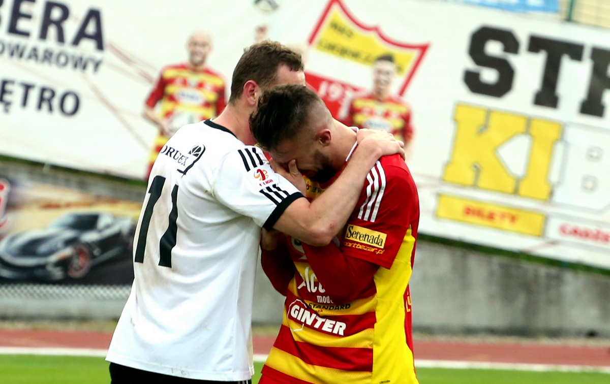 Schodzącego do szatni z twarzą w koszulce Lisowskiego pocieszali też kibice i prezesi Chojniczanki. Zawodnikom z Chojnic fani podziękowali za walkę i nawet jeśli po tym meczu Ekstraklasę trzeba będzie schować na półkę do szafki, to sezon i tak jest bardzo emocjonujący. Do zakończenia zostały jeszcze dwie kolejki, a wiele może się wyjaśnić jeszcze dziś, bo wiele zależy od trwającego meczu Zagłębia Sosnowiec ze Stalą Mielec.