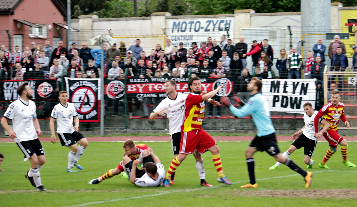 Bytovia i Chojniczanka zamieniły się pechem i szczęściem po kilkunastu minutach. Po wrzutce piłki z prawej strony przez gości Lisowski postanowił… No właśnie, nie wiadomo, co chciał zrobić zawodnik Chojniczanki. Wiadomo jedynie, że skończyło się to fatalnie, bo skierował piłkę do własnej bramki. Zarówno gospodarze, jak i goście nie mogli uwierzyć w to, co się stało. Tym bardziej kibice. Ta bramka dodała skrzydeł walczącej o utrzymanie Bytovii, która postanowiła powalczyć o pełną pulę. W ostatnim kwadransie najlepszą sytuację dla Chojniczanki miał jeszcze Hieronim Gierszewski, który szukał szczęścia po strzale za pola karnego. Żadnej z drużyn nie udało się już zdobyć bramki.