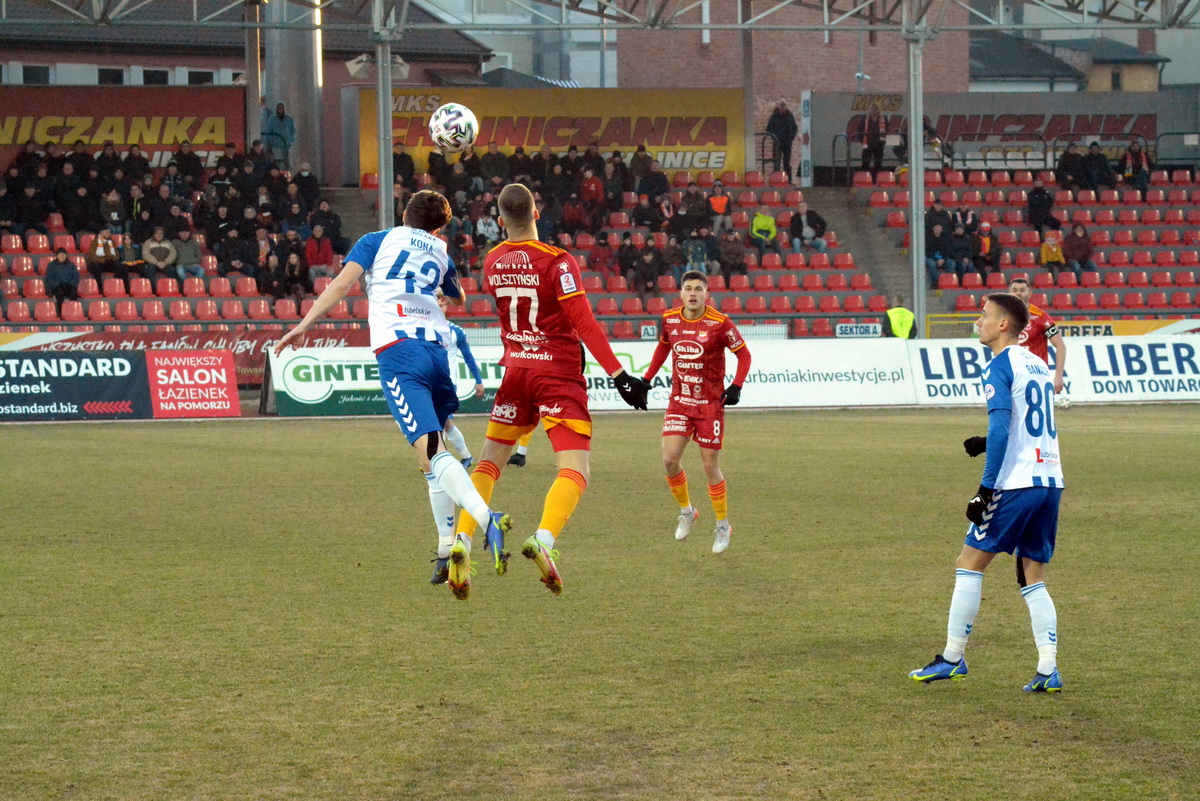 5 marca 2022 18:53Przypomnimy, Chojniczanka również efektownie rozpoczęła wiosenny sezon, gdzie w Stężycy pokonała Radunię i warto zaznaczyć, iż gospodarze u siebie za często nie lubią przegrywać. Sobotnie spotkanie było wyjątkowe dla Macieja Kony, który w zimie zamienił Chojniczankę na Wisłę Puławy. W przedmeczowych zapowiedziach przyjezdni nie ukrywali, iż udają się do wicelidera po to, aby sprawić niespodziankę. Od słów przeszli do czynów i do przerwy Chojniczanka remisowała 1:1 z Wisłą Puławy.