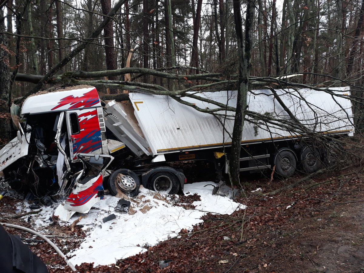Aktualizacja. 9.01. Policjanci wyjaśniają okoliczności wypadku drogowego, do którego doszło wczoraj na trasie Chojnice-Bytów w miejscowości Wolność. Pracujący na miejscu mundurowi wstępnie ustalili, że 36-letni kierujący samochodem ciężarowym przewożącym piasek nie zachował ostrożności na łuki drogi w wyniku czego wypadł z jezdni i uderzył znajdujące się na skraju lasu drzewa. W wyniku tego zdarzenia kierujący ciężarówką trafił do szpitala. Funkcjonariusze zabezpieczyli miejsce zdarzenia, zorganizowali objazdy i wykonali oględziny pojazdu oraz miejsca zdarzenia. Policjanci apelują unikajmy nadmiernych prędkości, brawury i pośpiechu.