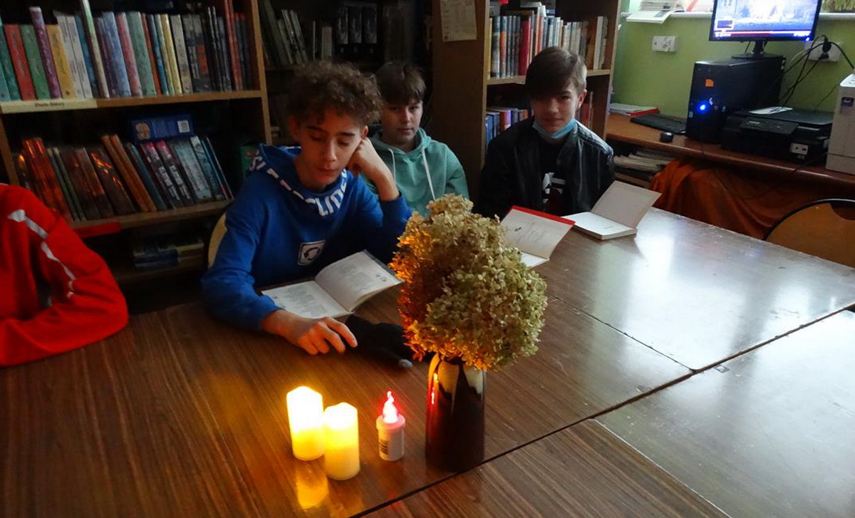 Każda z klas zapoznała się z treścią lektury „Dziady cz.II” Adama Mickiewicza, odczytując ją z podziałem na role, przy blasku lampionów i świec. Wspólne czytanie zostało poprzedzone wysłuchaniem współczesnych utworów muzycznych nawiązujących do dzieła naszego wieszcza narodowego: „Elektryczne dziady” zespołu Hard Rockets oraz „Baranek” – Kultu.