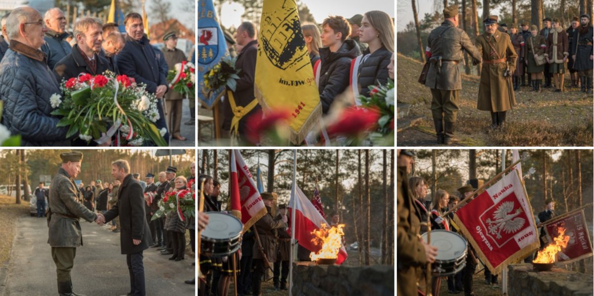 Przy pomniku poświęconym poległym hołd bohaterom walczącym o wolność oddali przedstawiciele lokalnych władz samorządowych oraz delegacje różnych instytucji, stowarzyszeń, organizacji historycznych, a także mieszkańcy. Podczas ceremonii złożono kwiaty i zapalono znicze, symbolizujące pamięć i wdzięczność dla poległych partyzantów: Józefa Dorawy, Edmunda Kroplewskiego, Franciszka Lesmana, Józefa Mrozika, Stanisława Przytarskiego, Leona Szutenberga i Wojciecha Wirkusa.