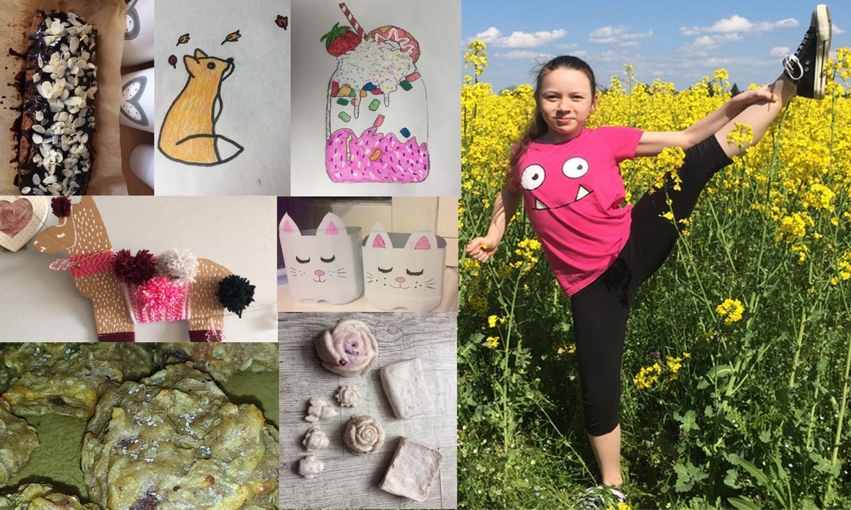 18 maja 2020 13:50Po ciekawe prace plastyczne i uszycie maseczek dla najmłodszych. Julia Roszyk z klasy VII c zaprezentowała talent kulinarny- wypieki jak napisała Julka są ,,Z głowy, bez przepisu i wynikiem eksperymentu". Julia Rekowska z klasy V e czas wolny spędza rysując, a po zmianie obostrzeń ćwiczy wśród natury taniec nowoczesny.