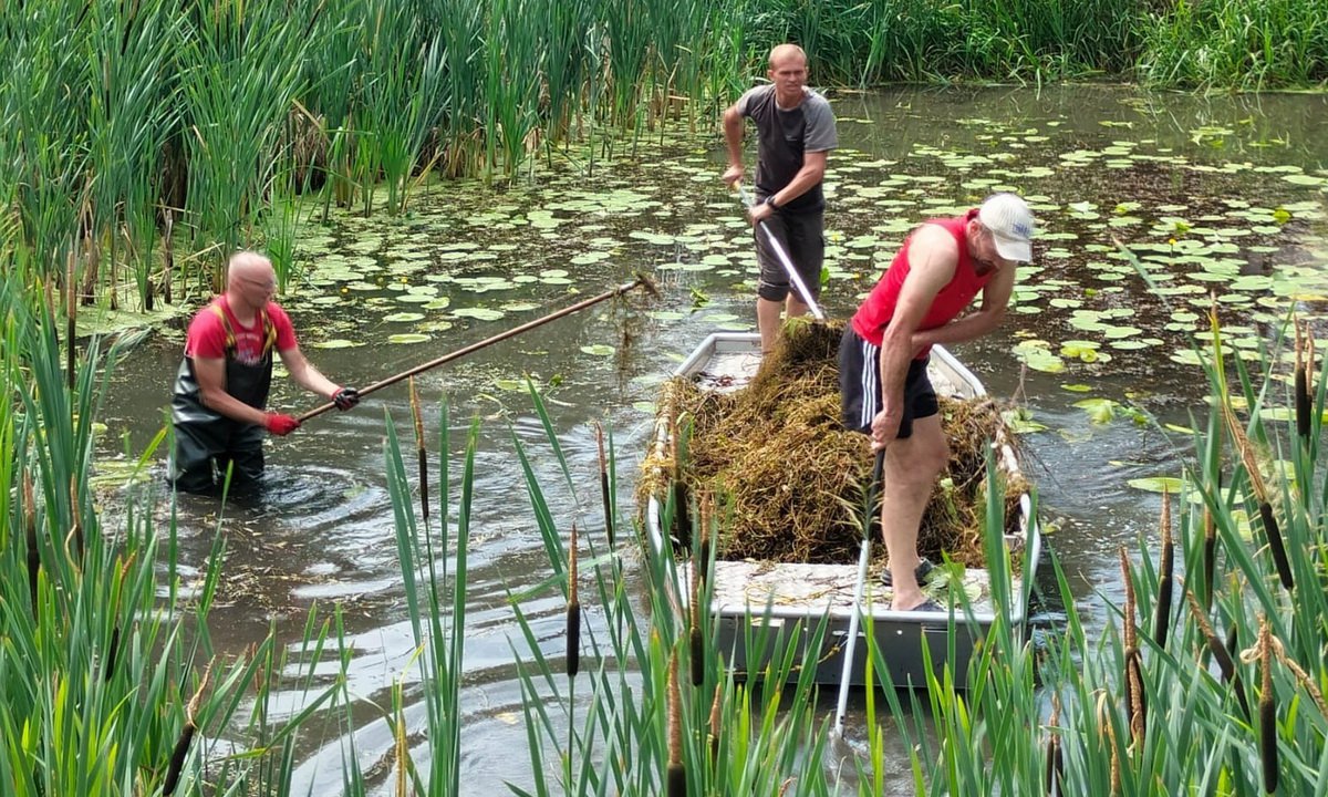 Mieszkańcy Chojniczek zajmują się także czyszczeniem stawu, który jest w centrum tej miejscowości. | fot. fb sołectwo Chojniczki