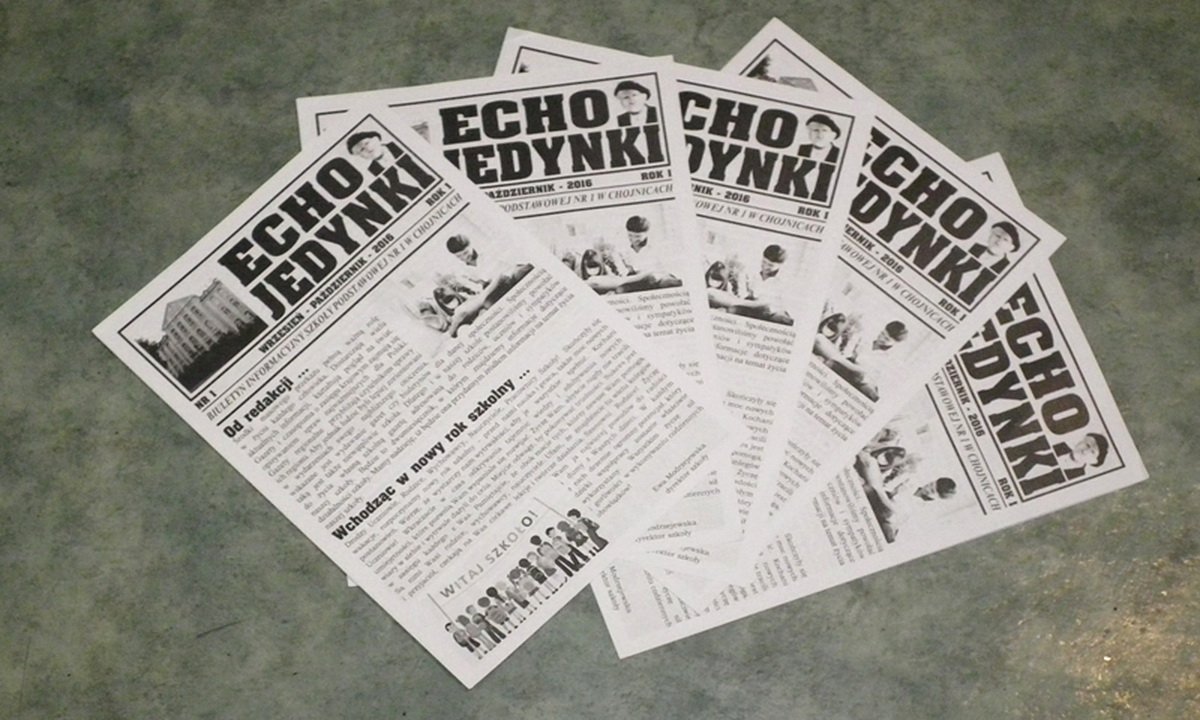 Dlatego i w naszej szkole postanowiliśmy powołać do życia naszą własną szkolną gazetę adresowaną do naszych rodziców, uczniów i sympatyków naszej szkoły. Jest to dwumiesięcznik, w którym znajdziemy informacje dotyczące działalności szkoły. Mamy nadzieję iż ,,Echo Jedynki’’ będzie przydatnym źródłem informacji na temat życia naszej szkoły.