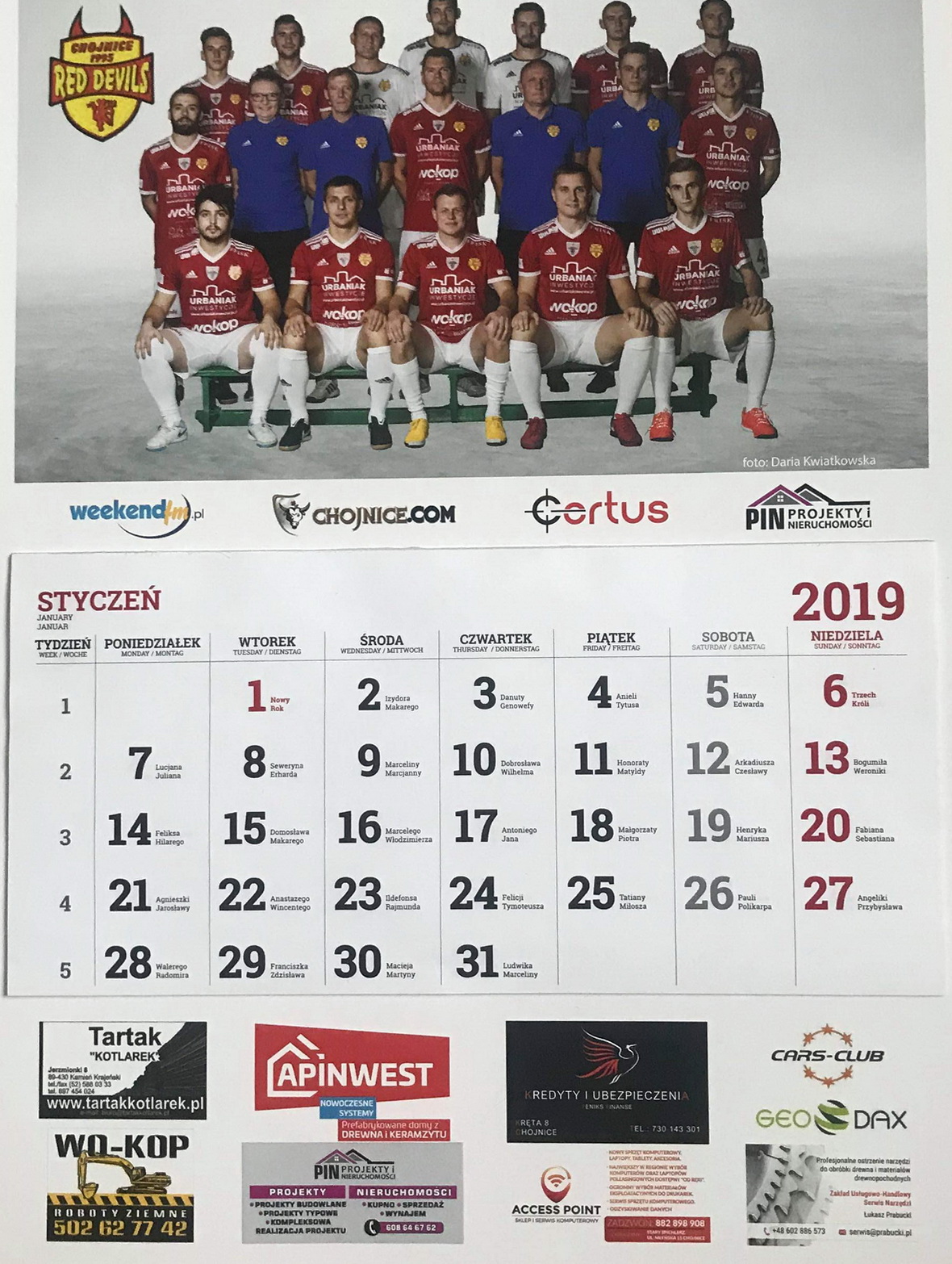 Kalendarze Charytatywne Red Devils będzie można nabyć od 2 stycznia i będą rozprowadzane w następujących miejscach: