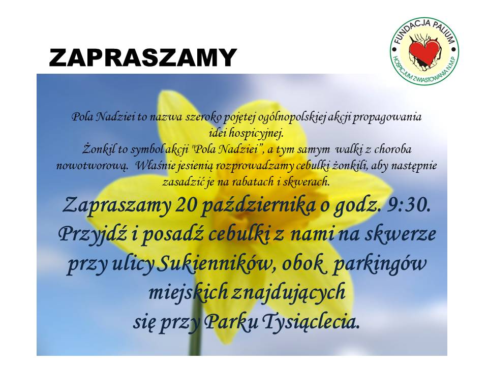 Akcja ta jak co roku rozpocznie się od zasadzenia cebulek żonkili. Zapraszamy mieszkańców Chojnic na uroczyste sadzenie, które odbędzie się 20 października o godz. 9:30.