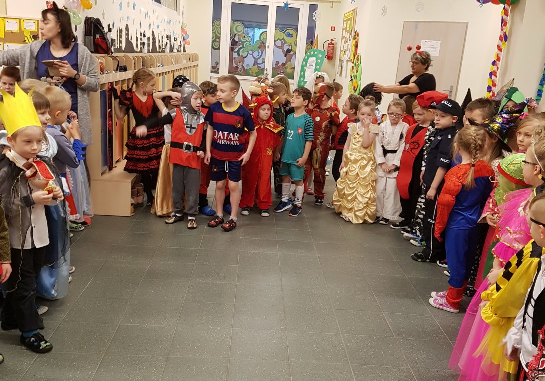 Niezliczone księżniczki, towarzyszący im kowboje, Indianie, marynarze, królewny, motylki, myszki, biedronki, smerfy, policjanci, smok oraz batman ze spidermanem, a także inne postacie z kreskówek opanowały na kilka godzin nasze przedszkolne sale. Na twarzach małych tancerek i tancerzy malował się uśmiech, który nie znikał, mimo chwilowego zmęczenia.