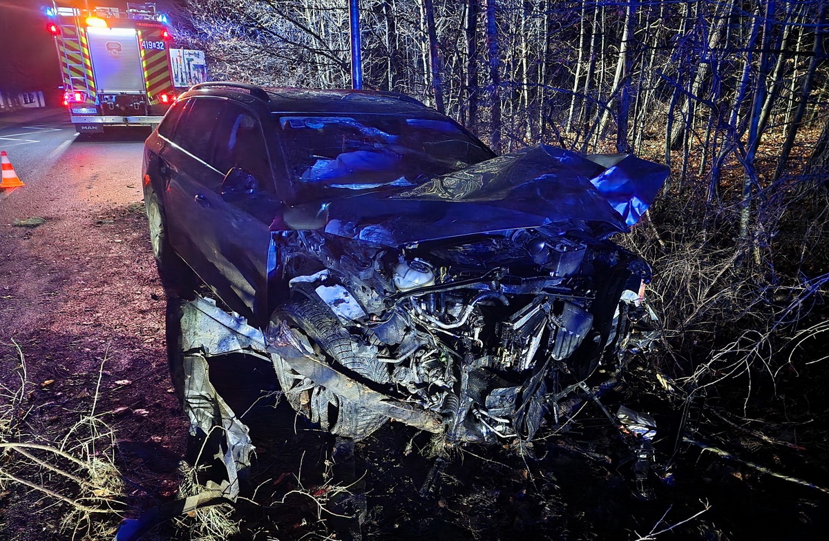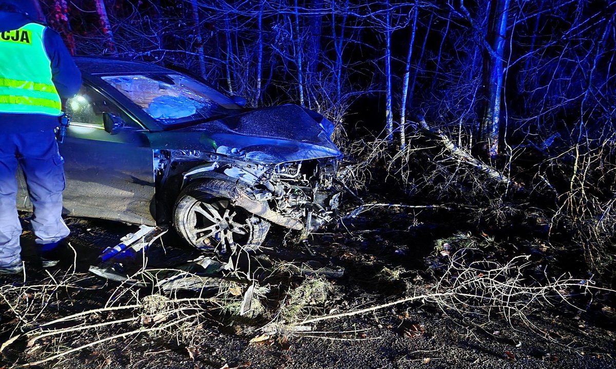 Sprawca uciekł z miejsca kolizji, a okoliczności i przyczyny zdarzenia wyjaśnia policja. | fot. OSP Charzykowy