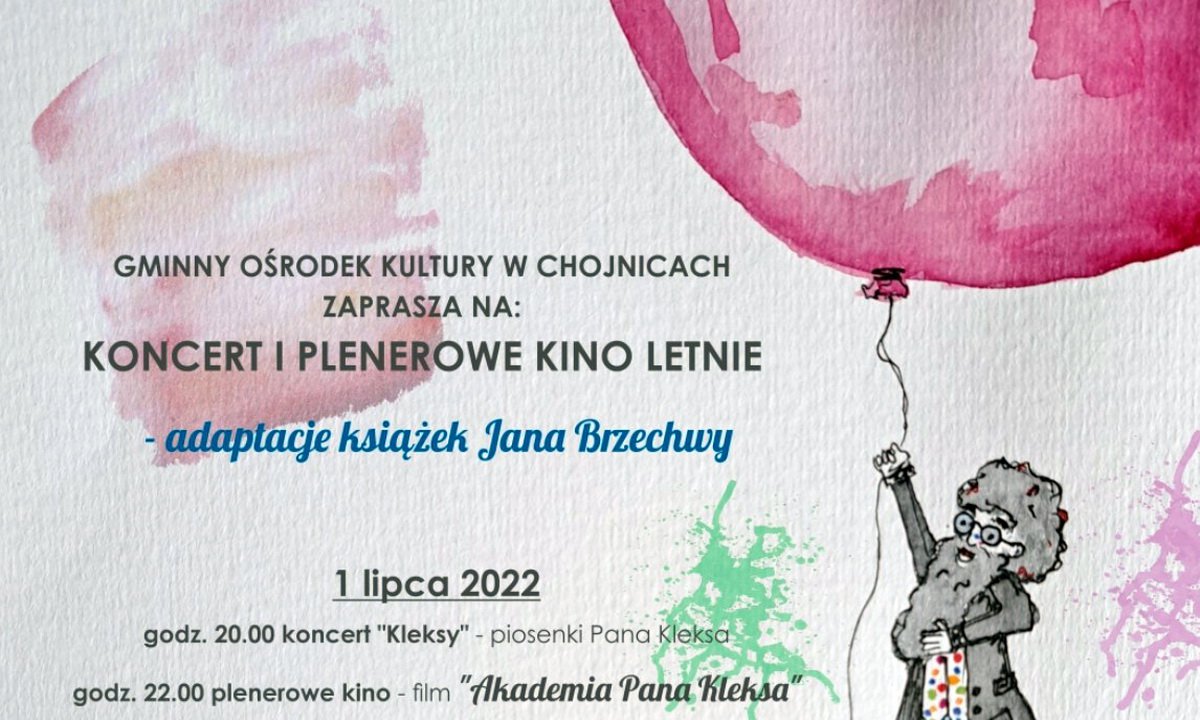 Same projekcje zaś rozpoczną się o godz.22.00 – zarówno w piątek (1 lipca) , jak i w sobotę (2 lipca). W razie niepogody wydarzenia odbędą się w innym terminie – prosimy o śledzenie strony www.gokchojnice.pl i profilu FB. Dla widzów będą przygotowane leżaki. Chętni będą też mogli zakupić lektury autorstwa Jana Brzechwy w promocyjnych cenach.