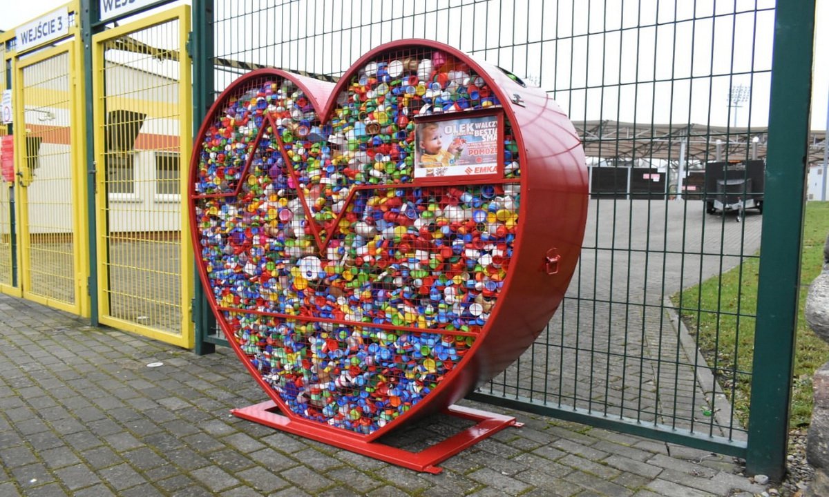 Do tego serca wrzucano plastikowe nakrętki na leczenie i rehabilitacje Olka. | fot. mkschojniczanka.pl